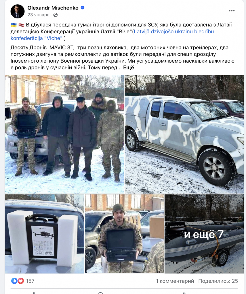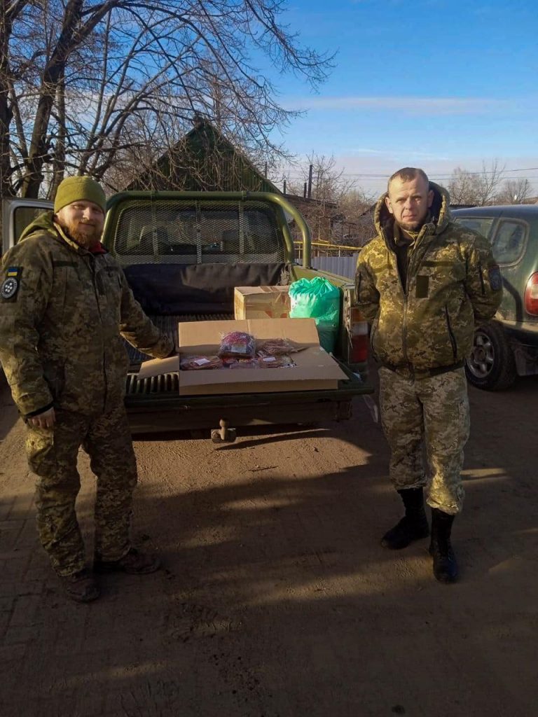 Наступного дня відбулася передача гуманітарної допомоги спецпідрозділам ГУР у супроводі Олександра Мищенко.